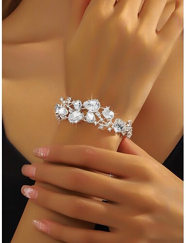 Pulsera de cristal con diamantes de imitación para mujer: brazalete ajustable plateado brillante para fiestas de fin de año, bodas y eventos nocturnos.