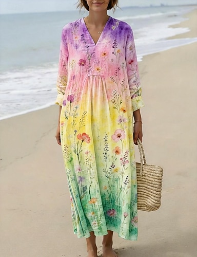 Mujer Vestido Midi Vestido informal Vestido de cambio Moda Moderno Diario Exterior Vacaciones Holgado Floral Tropical Manga Larga Escote en Pico Verde Trébol Verano Primavera Otoño