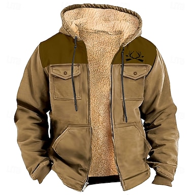 Hombre camuflaje Color Camuflaje Vellón Sudadera Chaqueta Moda Fresco Diario retro de la vendimia Con Capucha Exterior Regalo Caza Azul Piscina Negro Marrón Verde Trébol Cremallera Bolsillo Otoño