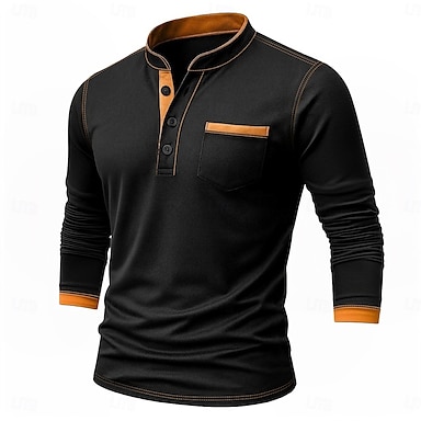 Hombre Henley Shirt Tee Top con cuello henley Manga Larga Color sólido Plano Moda Design Casual Bloque de Color Botones Henley Exterior Casual Diario Verano Primavera Otoño Negro Blanco Azul Marino