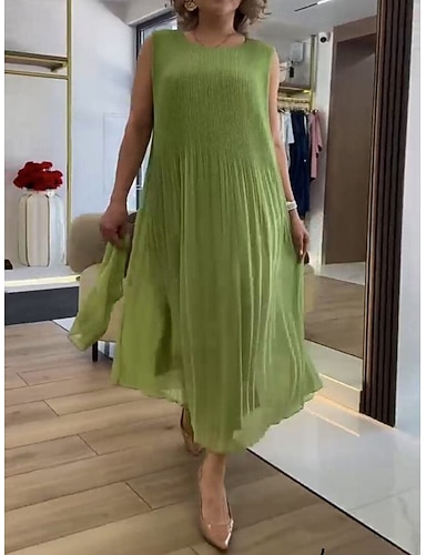 Mujer Vestido Midi Vestido informal Gasa Vestido de raso Elegante Moda Moderno Exterior Vacaciones Noche Holgado Plano Sin Mangas Cuello Barco Verde Trébol Verano Primavera