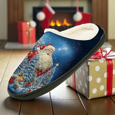 Pantuflas navideñas de Papá Noel para hombre: diseño invernal con Papá Noel, pantuflas suaves con forro polar para noches acogedoras, fiestas navideñas y comodidad en casa.