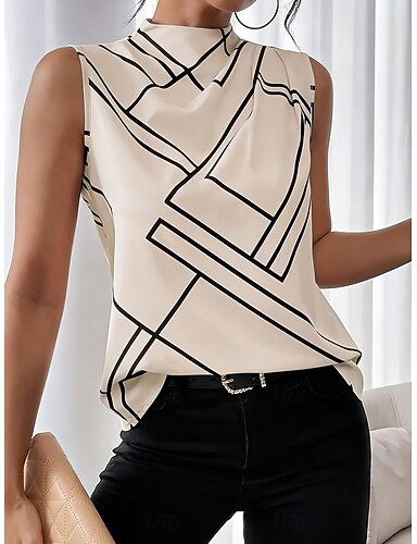 Mujer Camisa Blusa Camisa sin mangas Geométrico Elegante Básico Clásico Sin Mangas Cuello Alto Tops regulares Diario Festivos Noche Albaricoque Verano Primavera