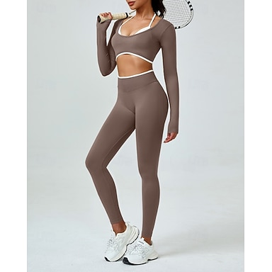 Mujer Tracksuit Conjunto de Ropa Deportiva Mono de Fitness 2 Piezas Tobilleros Bloque de color Trajes de Yoga Verano Primavera Otoño Invierno Gris oscuro Negro Entrenamiento de gimnasio Corriendo