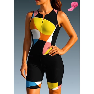 Mujer Maillot de Ciclismo Traje de triatlón Jersey de descenso Sin Mangas Verano Primavera Otoño Negro amarillo Geométrico Curvo Gracioso Bicicleta Filtro Solar Resistente a los rayos UV Almohadilla