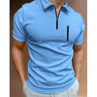 Hombre Polo Camisetas polo Vacaciones Calle Cremallera de un cuarto Manga Corta Moda Básico Color sólido Cremallera Verano Primavera Ajuste regular Negro Blanco Vino Verde Ejército Azul Marino Azul