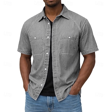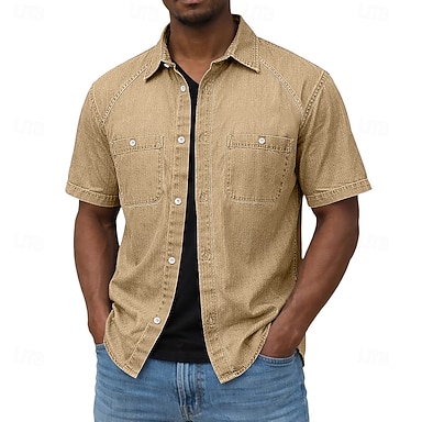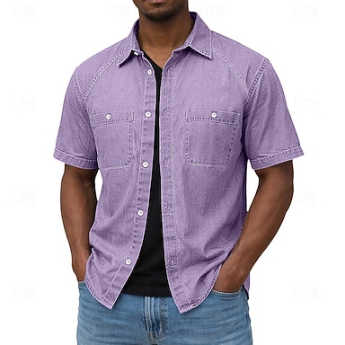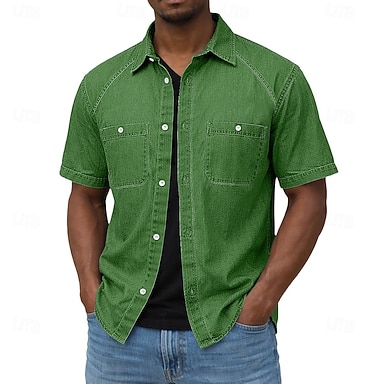 Hombre Camisa Camisa casual Abotonar la camisa Camisa 100% algodón con lavado ácido Negro Morado Verde Trébol Color Caquí Verde Ejército Manga Corta Plano Cuello Camisero Casual Diario Bolsillo