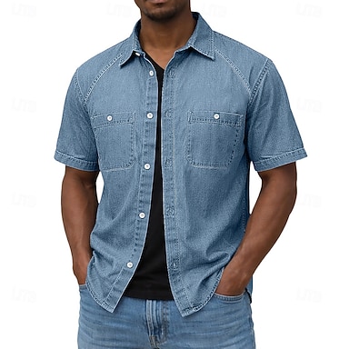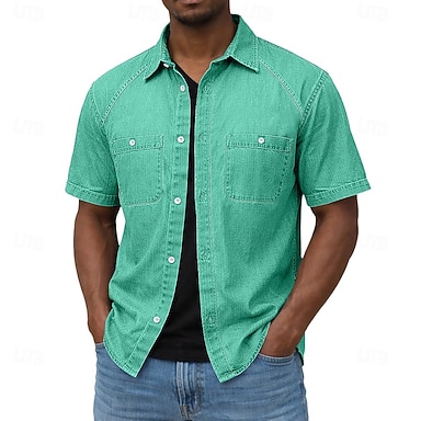 Hombre Camisa Camisa casual Abotonar la camisa Camisa 100% algodón con lavado ácido Azul Piscina Negro Verde Claro Morado Verde Trébol Manga Corta Plano Cuello Camisero Casual Diario Bolsillo