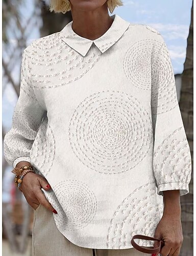 Blusa de mujer de manga larga con cuello Peter Pan casual gráfica abstracta vintage tropical estilosa de cuello regular parte superior habitual estampado diario botones blanco rosa azul verano