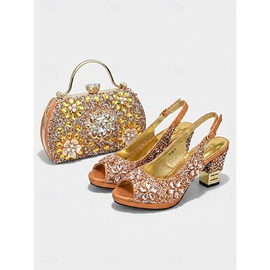 Zapatos elegantes para mujer &Conjunto de bolsos: elegantes accesorios a juego para fiestas de cóctel.