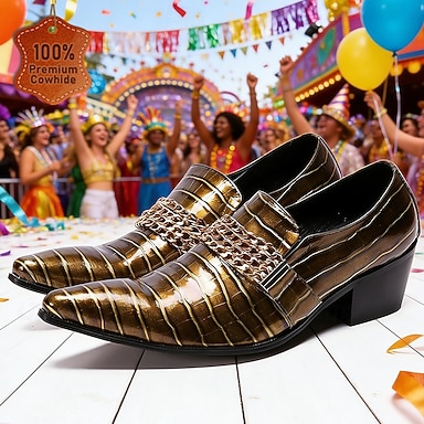 Mocasines de impresión de cocodrilo dorado de Mardi Gras para hombres – zapatos de cuero 100% premium de lujo con diseño elegante perfectos para fiestas de carnaval y ocasiones festivas