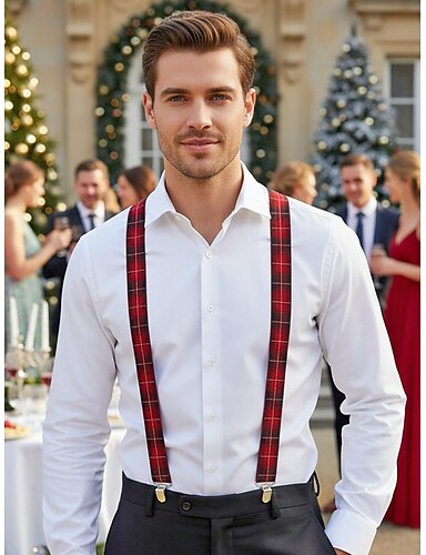 Tirantes navideños para hombre: de tela elástica con múltiples diseños estampados, ajustables y elegantes, perfectos para fiestas navideñas y ocasiones formales.