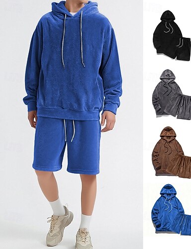Hombre Sudadera Tracksuit Sudadera con capucha y pantalones cortos Conjunto Sudadera Exterior Vacaciones Diario Correa Plano Azul Piscina Negro Marrón Ropa de Deporte Deportes Moda Otoño