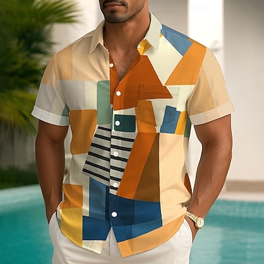 Hombre Geométrico Bloque de color Camisa Camisa casual Abotonar la camisa Manga Corta Moda informal Vacaciones Uso Diario Festivos Verano Primavera Cuello Vuelto Impresión 3D camisas con cuello Un