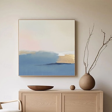 pintura de cielo y océano pintado a mano pintura de paisaje calmante pintura al óleo de paisaje neutro hecha a mano estética beige claro ola acrílica pintura del mar pintura minimalista