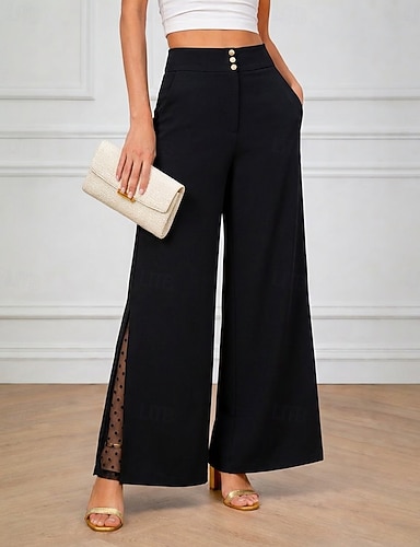 Mujer Perneras anchas Pantalones Pantalones casuales Pantalones de verano Elegante Moda Casual / Diario Longitud total Alta cintura Color sólido Plano Encaje Perneras anchas Cintura elástica