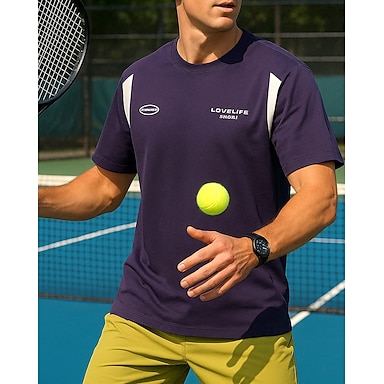 Hombre Retazos Camisa deportiva Camiseta de tenis Tee de tenis Mangas cortas Reductor del Sudor Dispersor de humedad Transpirable Tenis Golf pepinillo Morado Gris Ropa de tenis