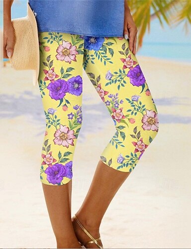 Pantalones Capris de Leggings para Mujer Alta Elasticidad Vacaciones Moda Hawaiana Longitud a los Tobillos Cintura Media Impresión Floral Térmico Cálido Transpirable Suave Vacaciones Casual Diario