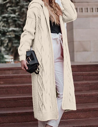 Mujer Pulóveres Cárdigan Elegante Moda Ropa de calle Color sólido Con Capucha De Punto Con Capucha Manga Larga Tops largos Tejer Exterior Hogar Diario Blanco Amarillo Otoño Invierno