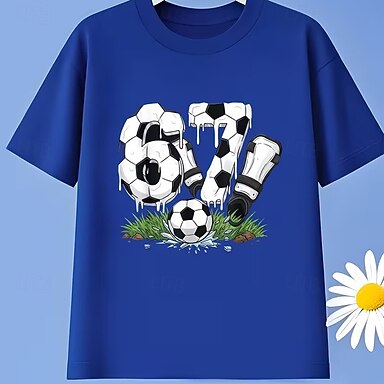 Camiseta infantil 100% algodón con estampado de fútbol y jerga divertida, cuello redondo, manga corta, estilo casual, para uso diario, deportes al aire libre, moda urbana, verano.