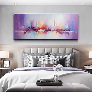 Pintura al óleo pintada a colgar Pintada a mano Panorámica horizontal Abstracto Paisaje Moderno Incluir marco interior
