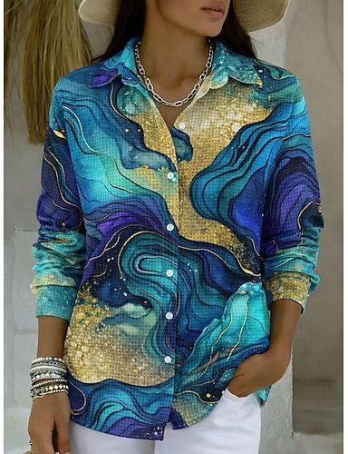 Mujer Camisa Botones Estampado Graphic Abstracto Vintage Elegante Moderno Manga Larga Cuello Camisero Tops regulares Diario Azul Piscina Naranja Verde Trébol Verano Primavera