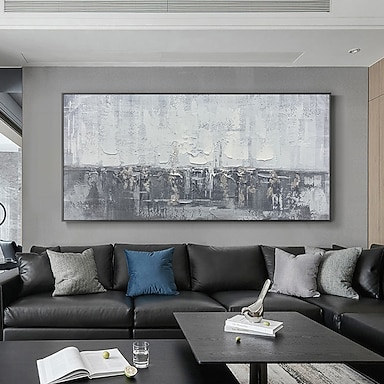 Pinturas al óleo abstractas de Mintura hechas a mano en gris, blanco y negro sobre lienzo, decoración de pared, cuadros modernos para decoración del hogar, pintura enrollada sin marco y sin estirar.