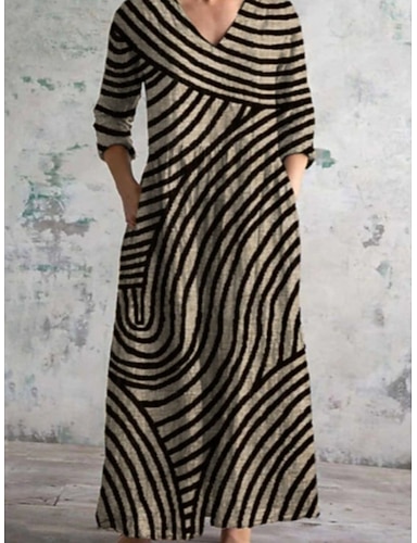 Vestido de Fiesta a la Altura del Té A-Line Vestido de Cóctel Vestido de Invitada de Boda Vestido de la Madre de la Novia Manga Larga Escote Redondo Elegante Formal Mezcla de Algodón con Botones