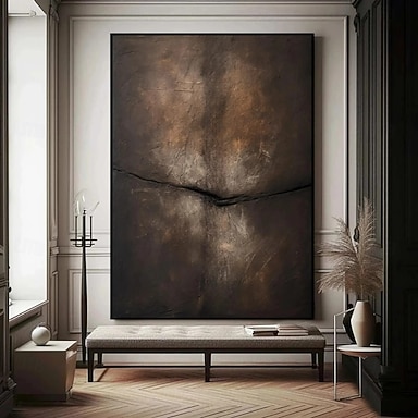 Pintura al óleo hecha a mano, lienzo, arte de pared, decoración, marrón, minimalista, abstracto para decoración del hogar, marco estirado, pintura colgante/pintura enrollada sin marco, sin estirar