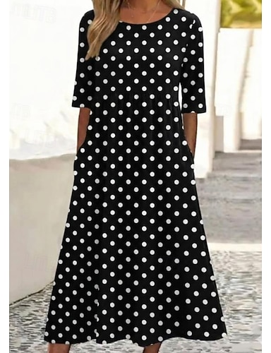 Mujer Vestido Midi Lino de algodón sintético Vestido de cambio Vestido informal Vestido de verano Moda Moderno Diario Playa Fin de semana Ajuste regular Flor Media Manga Cuello Barco Negro Rosa Verde