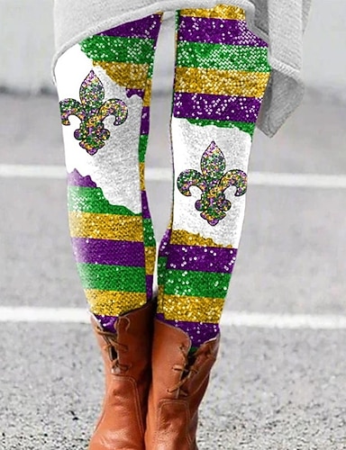 Mallas de mujer Carnival activas de vacaciones moda pantalones de cintura alta gráficos geométricos impresión comodidad al aire libre cómodas elásticas vacaciones festival violeta negro verde verano