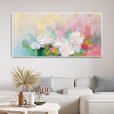 Pintura al óleo de flor rosa floreciente brumosa grande pintada a mano primavera vibrante pintura floral colorida abstracta arte de lienzo hecho a mano pintura de flores de dolor romántico