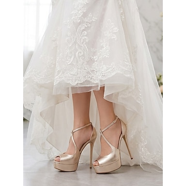 Sandalias de tacón alto con plataforma color champán para mujer, elegantes zapatos de novia con punta abierta y tiras en T, tacones para bodas urbanas para novias.