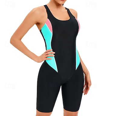 Mujer Camiseta Protección Solar Surf Traje de baño Una pieza Bloqueo de color Protección UV Elástico Sin Mangas Bañadores Traje de baño Surf Buceo Natación Verano