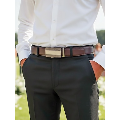 Cinturón de cuero genuino para hombre con hebilla de trinquete en color negro y marrón, cinturón ajustable para bodas, fiestas, desplazamientos a la oficina, ocasiones informales de negocios y eventos formales.