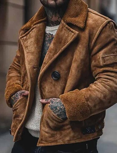 Hombre Chaqueta de gamuza sintética Cortavientos Chaqueta de sherpa Chaqueta de ante marrón Casual Casual Diario Cortavientos Retazos Bolsillo Otoño Invierno Color sólido Vintage Moda Regular Marrón