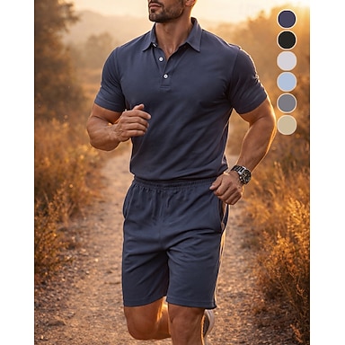 Hombre Tracksuit Vestimenta para correr Trajes de entrenamiento Correa 2 Piezas Color sólido Camiseta de running con pantalones Conjunto de ropa deportiva Verano Primavera Negro Blanco Entrenamiento