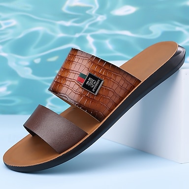 Sandalias planas de cuero marrón para hombre, cómodas sandalias casuales de verano con punta abierta, transpirables, estilo resort y para actividades al aire libre, ideales para la playa, la piscina y las vacaciones.