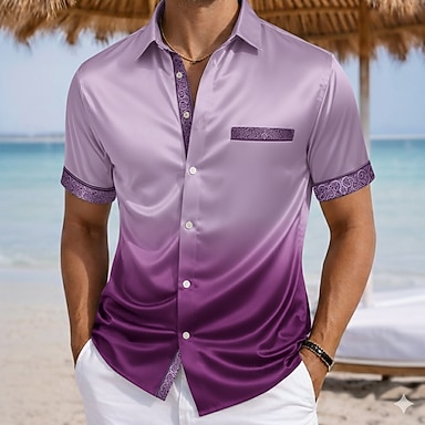 Hombre Geométrico Degradado Olas Camisa Camisa de verano Abotonar la camisa Manga Corta Moda informal Exterior Vacaciones Uso Diario Verano Primavera Cuello Vuelto Impresión 3D camisas con cuello