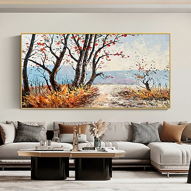 Pintura al óleo hecha a mano lienzo arte de la pared decoración otoño moderno idílico paisaje arbolado para la decoración del hogar enrollado sin marco pintura sin estirar