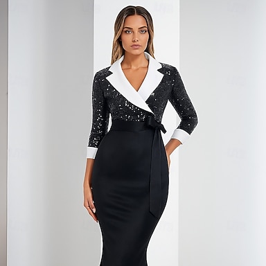 Mujer Vestido de esmoquin Corte A Fiesta Boda Formal Satén Brillante Elegante Bloque de Color Manga 3/4 Hasta el Suelo Solapas con muescas