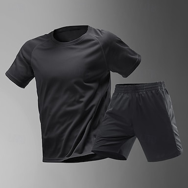 Hombre Color sólido Trajes de entrenamiento Conjunto deportivo de 2 piezas Verano Manga Corta Secado rápido Compresión Dispersor de humedad Entrenamiento de gimnasio Entrenamiento activo Ejercicio