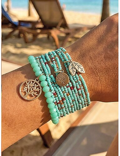 Pulsera bohemia con cuentas del árbol de la vida para mujer: aleación y cuentas multicolor, perfecta para uso informal y vacaciones en la playa.