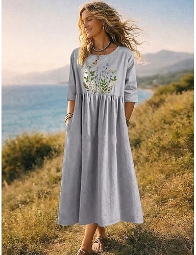 Mujer Vestido Midi Vestido informal Vestido de verano Moda Moderno Diario Playa Fin de semana Ajuste regular Animal Flor Media Manga Cuello Barco Púrpula Claro Azul Oscuro Primavera Otoño