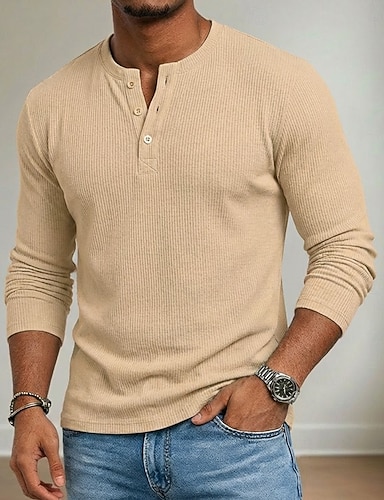 Hombre Camiseta Camiseta de punto acanalado Camiseta superior Manga Larga Henley Verano Primavera & Otoño Todas las Temporadas Plano Tira de pozo Moda Design Básico Puro Casual Vacaciones Calle Negro