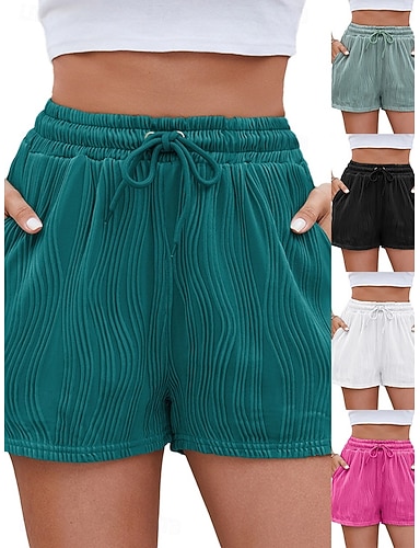 Mujer Bermudas Pantalón corto Pantalones cortos de verano Moda Ropa de calle Básico Corto Alta cintura Plano Correa Bolsillo Cintura elástica Transpirabilidad Cómodo Microelástico Diario Deportes