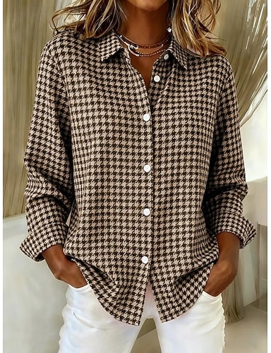 Mujer Camisa Blusa Botones Estampado Graphic Geométrico Plaid Vintage Tropical Diario Manga Larga Cuello Camisero Tops cortos Diario Negro Caqui Gris Oscuro Verano Primavera