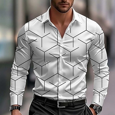 Hombre Diseño Geométrico Línea Camisa Camisa de raso Camisa para Vestido Manga Larga Informal de negocios Vacaciones Uso Diario Verano Primavera Otoño Cuello Vuelto Impresión 3D Camisas con botones