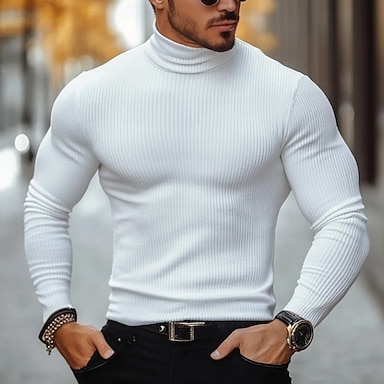 Hombre Camiseta Suéter de cuello de tortuga Camiseta de punto acanalado Camisa de manga larga Manga Larga Cuello enrollado Otoño invierno Plano Ligeras Clásico Casual Estriado Exterior Casual Deportes