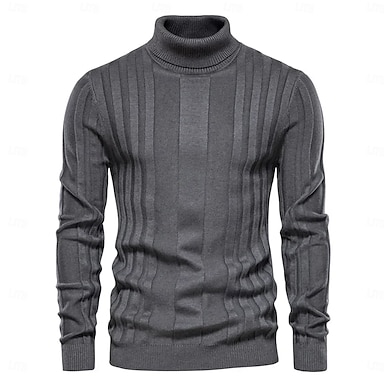 Hombre Pulóveres Suéter de punto Prendas de punto Estriado Tejer Tops regulares Bloque de color Cuello Alto Prendas de punto Neutral Exterior Ropa Primavera & Otoño Negro Amarillo S M L